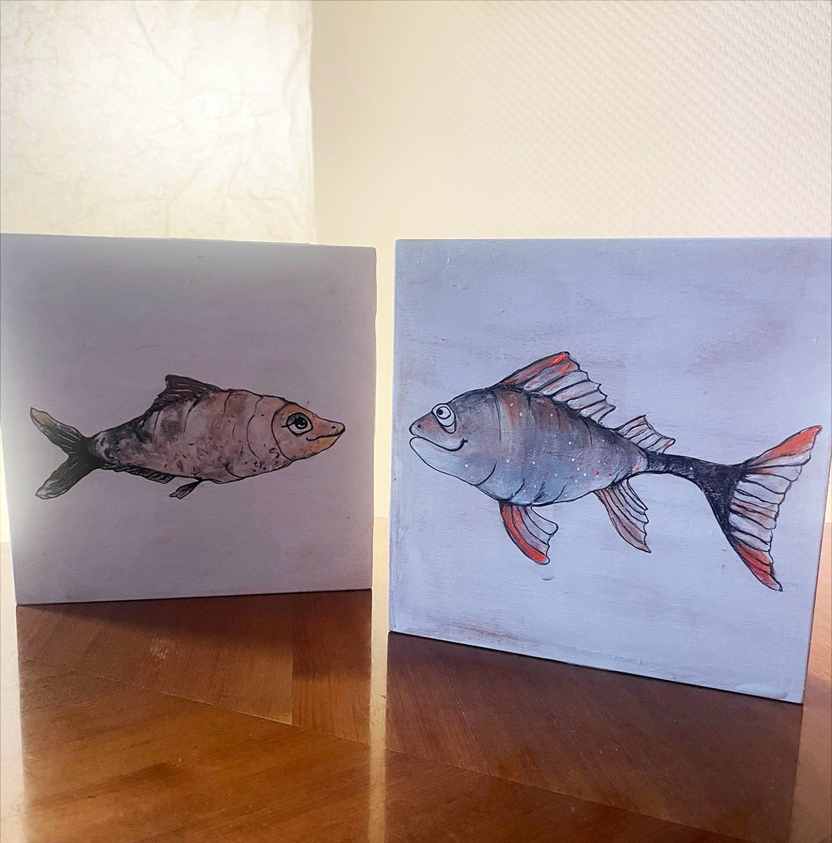 Einige meiner Tierzeichnungen werden von mir auf einen zuvor universell grundierten Holzblock geprinted und danach liebevoll, Block für Block, einzigartig bemalt.